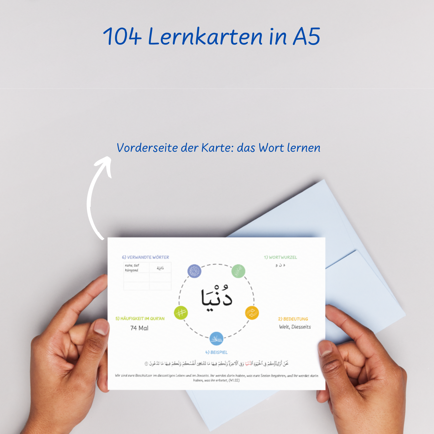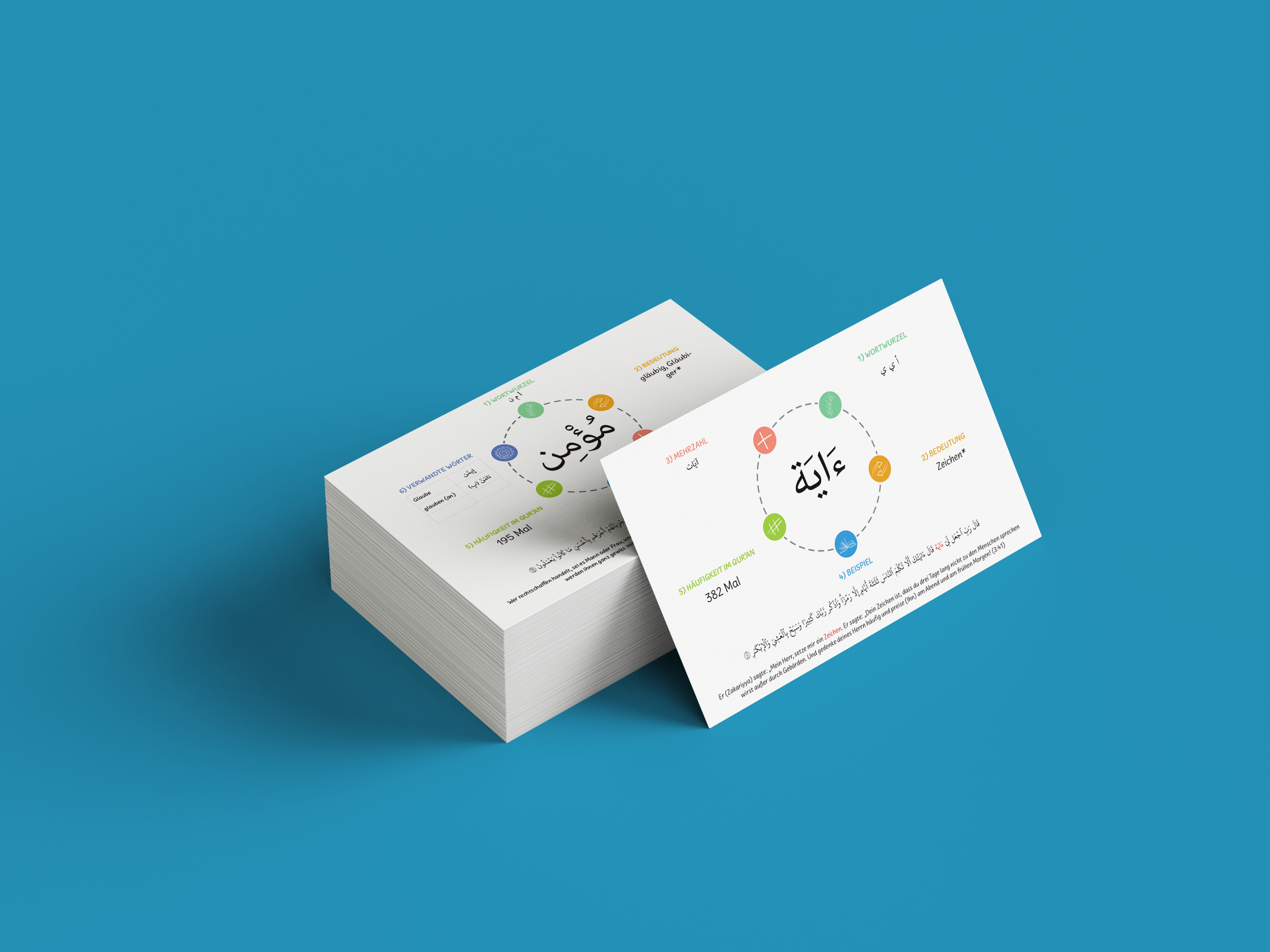 ✔ 100 interaktive Lernkarten mit je einem Hauptwort aus dem Koran und vielen verwandten Begriffen
